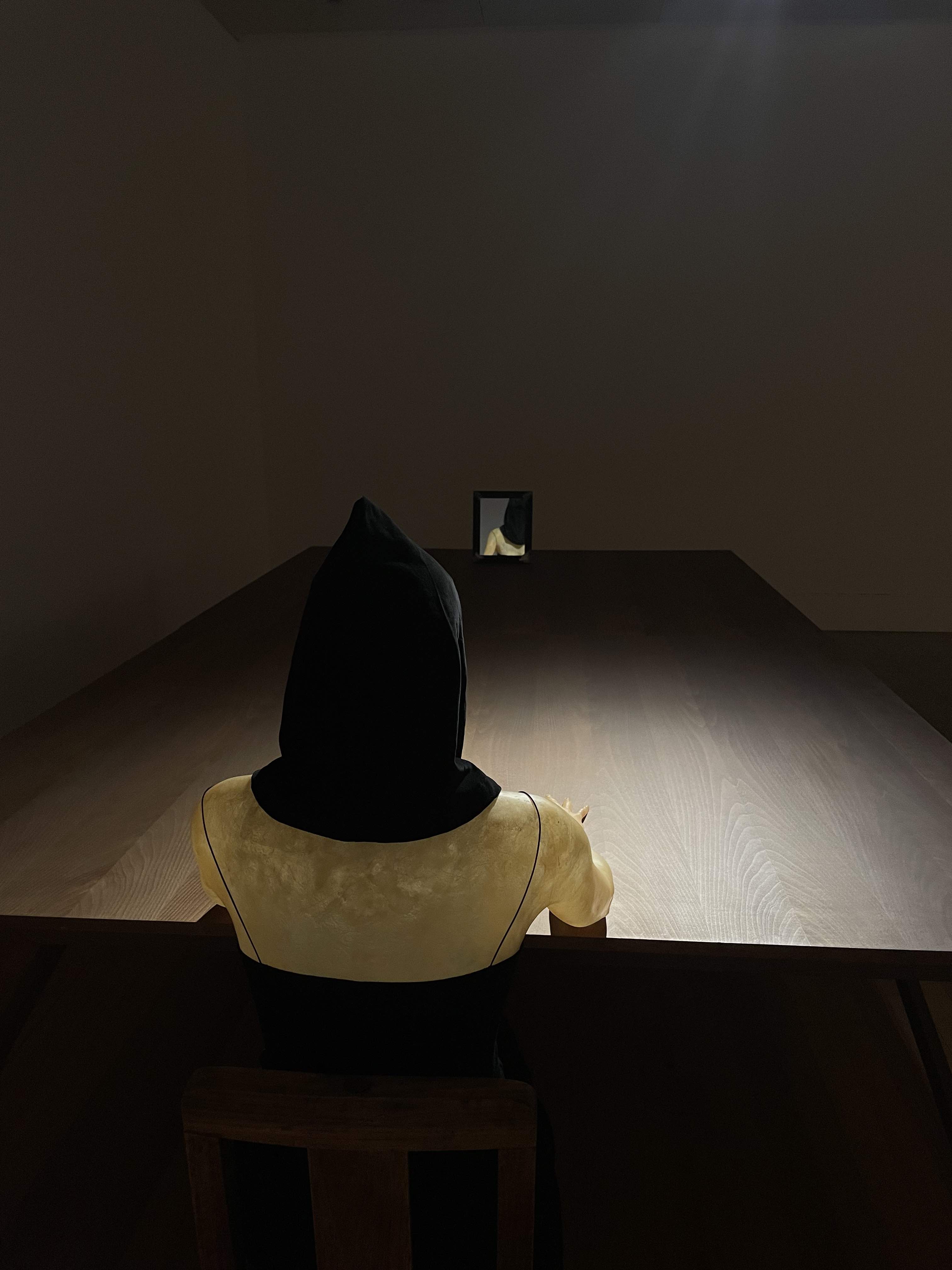 why i cared: removal/exclusion of identity along w being physically bound should freak me out but these works didn't do that. maybe its the little security camera in the back but I don't know what made me think of this as safety. maybe its just some strange patriarchal sense of safety drilled into my head
