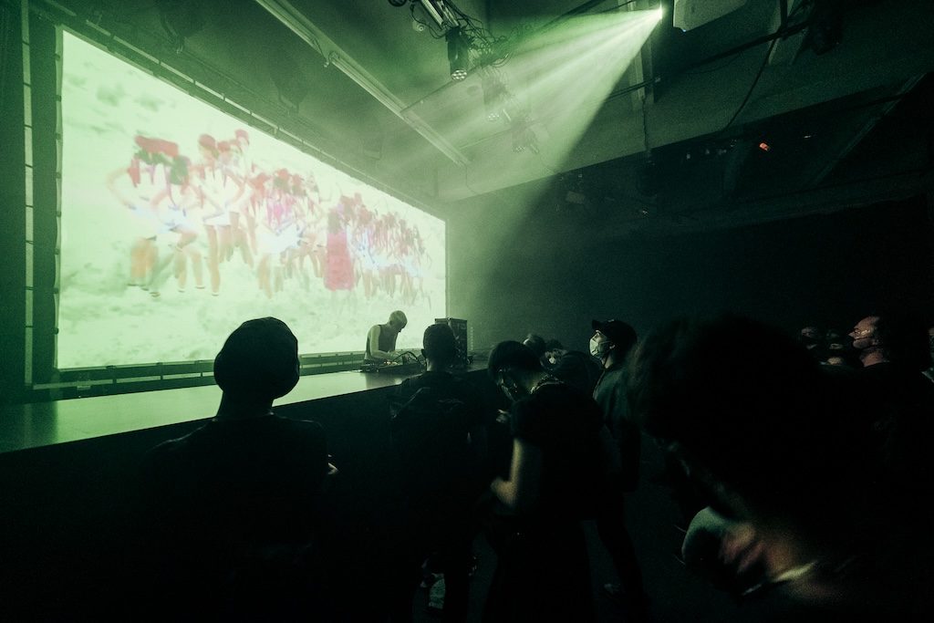 Video excerpts from the set show documentation of the live set in the foreground and samples of the visuals in the background.