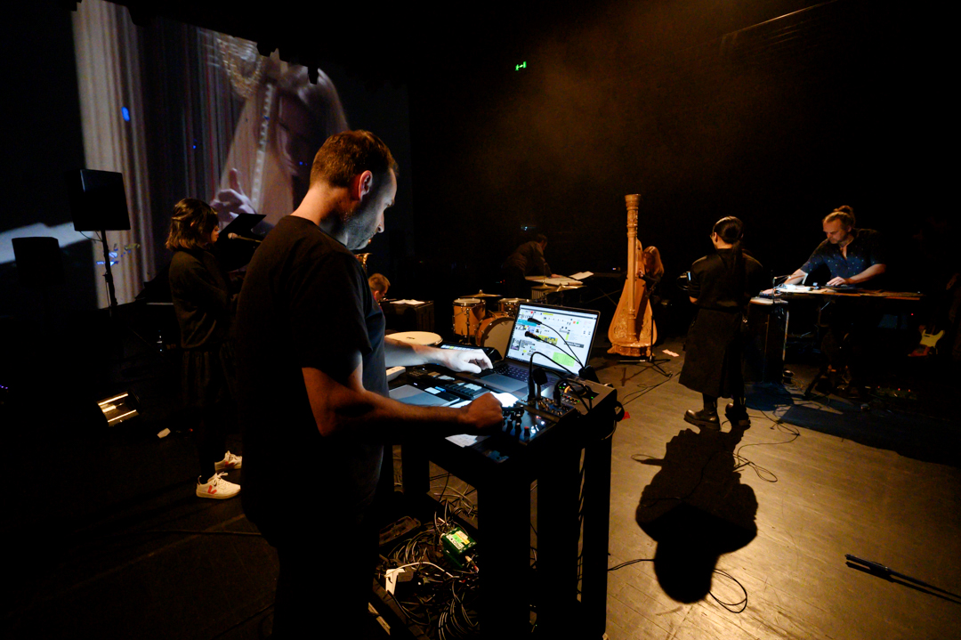 “Zangezi is a sextet accompanied by a “visual artist” and a “sound designer” that strives for an artificial but organic sound production aesthetic." As the visual artist in this sextet, I composed the live-visuals in this piece along with camera support from Hoi Man. Much of the visuals were created with live-camera input along with elements made using footage filmed the day before during our rehearsals. In this work, the visuals mainly played with temporality and multiplicity of the image.