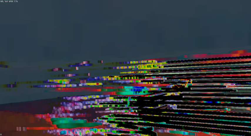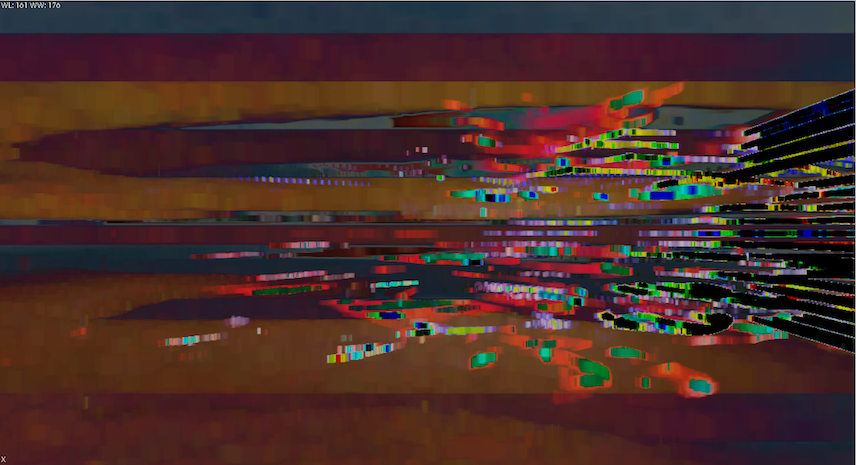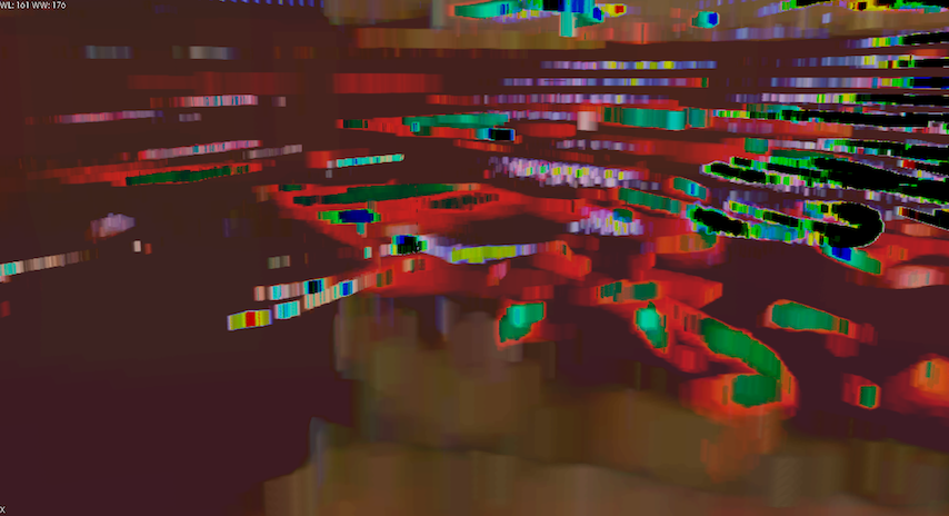 Ongoing experiments using a CT scan reader to compress video frames into objects that can be manipulated in 3D. This curiosity was born while attending an online workshop, “Creative and Artistic Use of Medical Imagery” led by Haraldur Karlsson and organised by Vašulka Kitchen Brno in April-May 2020.